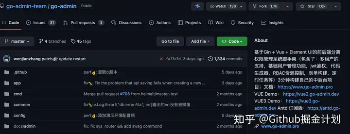 目前,go-admin 这个项目在 Github 上收获了 7.6k star,算得上是小有名气的 Go 项目了。